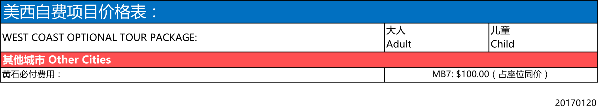 注:拉斯维加斯参团於下午3:00前在 Circus Circus 赌城Skyrise大楼2楼电梯旁等候导游