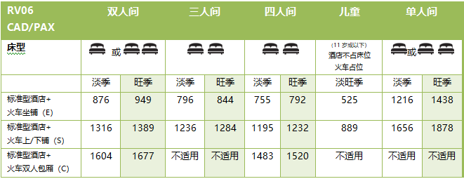 *火车舱位升级请参考明细介绍*