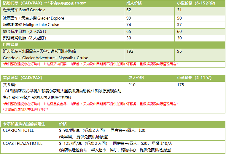 (贾斯珀出发时间可能根据活动项目时间有所调整, 请以导游通知为准)