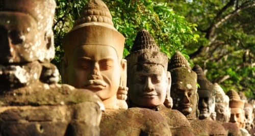 早餐后畅游【大吴哥】城区;前往参观【塔普伦庙 TaProhom】,电影(古墓丽影)以此为场景拍摄,有巨大的树木盘结在围墙庙门口,视为奇观。进入城中参观由54座大大小小宝塔构成一座大宝塔的【巴戎庙】,每一座塔的四面都刻有三公尺高的加亚巴尔曼七世的微笑面容,两百多个微笑浮现在葱绿的森林中,世人称之为「高棉的微笑」。参观吴哥城里的【吴哥古皇宫】,此处为加亚拔罗曼七世之祭祀地点。参观【古代法院】之雕刻,内有古时判官及麻疯王雕刻建筑。参观【斗象台】此乃古时皇帝挑选座骑的地方、【12生肖塔】此乃古时走钢索卖艺表演的地方。午餐后前往名列世界七大奇景【小吴哥ANGKOR WAT】,是高棉吴哥王朝全盛时期遗留下来的不朽宗教建筑;全城雕刻精美,有「雕刻出来的王城」美誉。是柬埔寨的标志,印在柬埔寨的国旗上。主要景点有【护城桥】,【主神殿】,【长廊】,【千佛殿】,【回音厅】。最后到【中心塔】,该塔从塔基算起高65米,垂直角度75度,相当陡峭。傍晚时分前往吴哥【巴肯山】赏落日,登上巴肯山顶,远眺宏伟的吴哥古城,趁着落日余晖,沐浴在金色阳光中享受着一场名叫「夕阳」的戏。本日同时安排当地【丝绸世界】与【 WG天然宝石】购物中心。