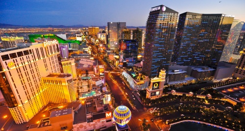 迎着朝阳,乘坐我们的豪华大巴,开始精彩的行程。沿十五号公路北行,穿过圣伯纳丁诺森林,进入北美最大的莫哈维沙漠。形单影孤的约书亚树一棵棵点缀在一望 无际的戈壁滩上,别有一番情趣。途中短暂停留休息后,于中午抵达世界赌城—拉斯维加斯!您可自费享用丰盛的自助午餐,之后入住Circus Circus Hotel。下午您不妨在酒店小憩,或者去赌场试试手气。晚餐后,您更可以和我们一起欣赏一下赌城的迷人夜景(夜游需自费)。夜幕降临、华灯初上的赌城是 霓虹灯的海洋,五彩缤纷的光影世界;五公里长的拉斯维加斯大道一晚的用电量可以供一个50万人口的城市用一年;这里的建筑更是融合了全世界的精华,是当之 无愧人类工程学上的奇迹!也是最具美国特色的城市!
